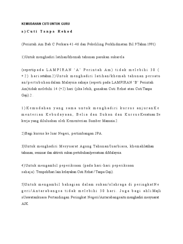 Kelayakan Cuti Tanpa Rekod Guru Sebagai Penjawat Awam Pekeliling Cikgu Share. Kelayakan Cuti Tanpa Rekod Guru Sebagai Penjawat Awam Pekeliling Cikgu Share. Pekeliling Perkhidmatan Cuti Tanpa Rekod Kematian.