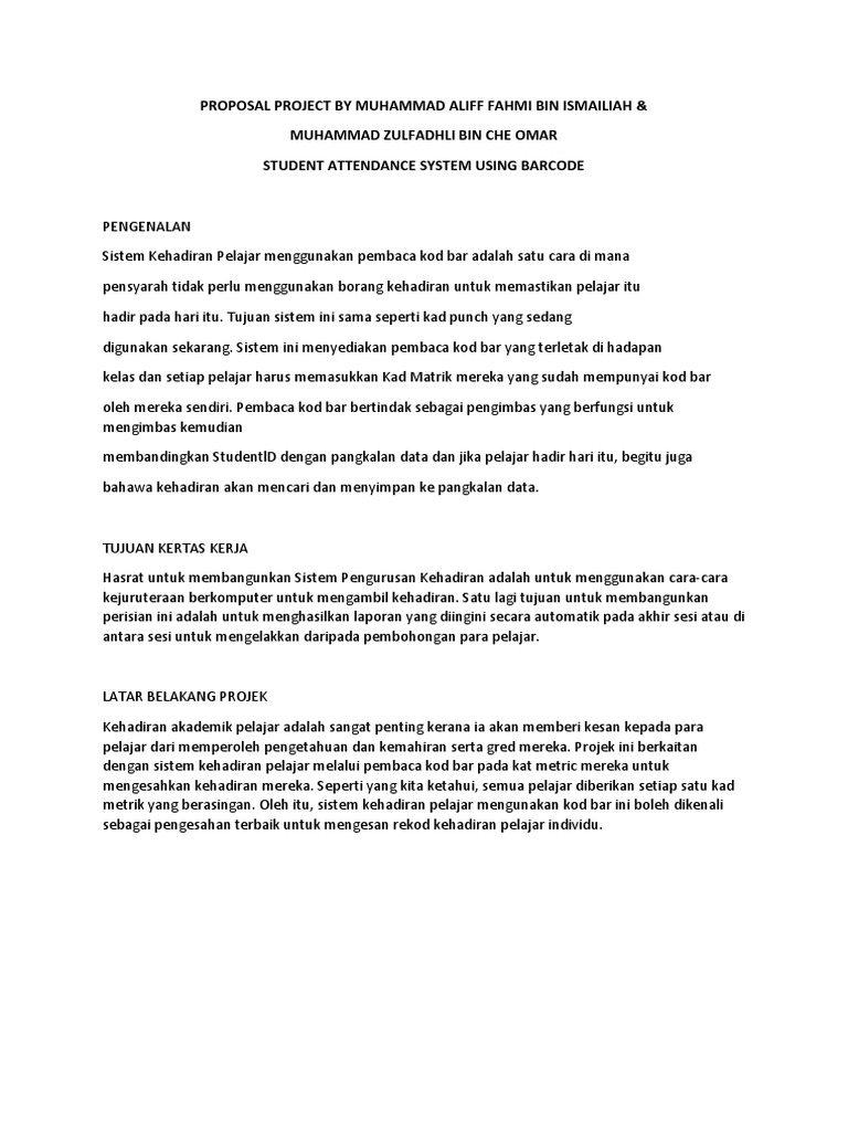 Proposal Project By Muhammad Aliff Fahmi Bin Ismailiah