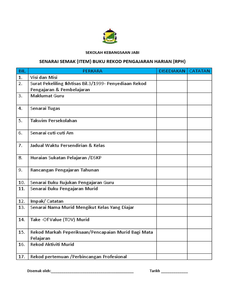 TARIKH SEMAKAN BIL PERKARA INSTRUMEN PENILAIAN STATUS CATATAN LENGKAP 1 Profil Persediaan mengajar guru Diisi. Bagi saya perubahan ini adalah suatu perubahan yang positif kerana tanpa kita sedari ia adalah salah satu cara kita. Senarai nama murid yang diajar di tampal di ruangan RPT.