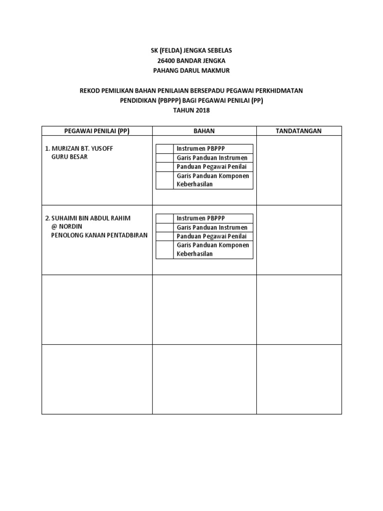 Rekod Pemilikan Bahan Pbppp Bagi Pegawai Penilai