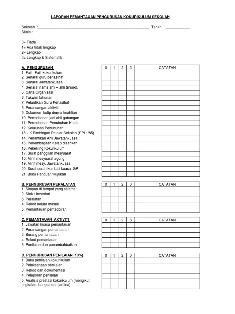 Senarai Semak Pemantauan Kokurikulum Pdf